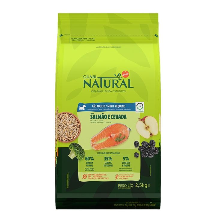 Ração Guabi Natural Cão Adulto Mini Pedaços Salmão e Cevada 2,5 Quilogramas