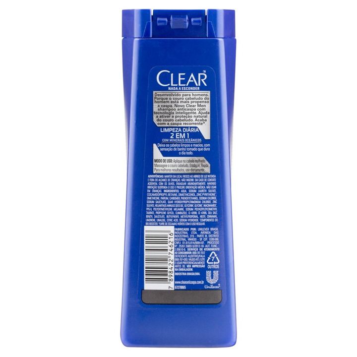 Shampoo Clear Men Limpeza Diária 2 Em 1 200 ML