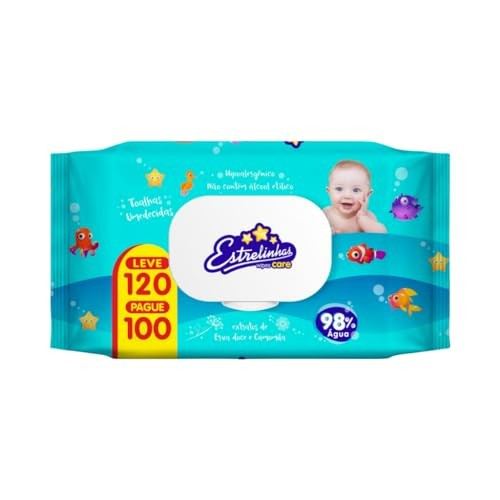 Toalha Umedecida Estrelinhas Com 120 Unidades